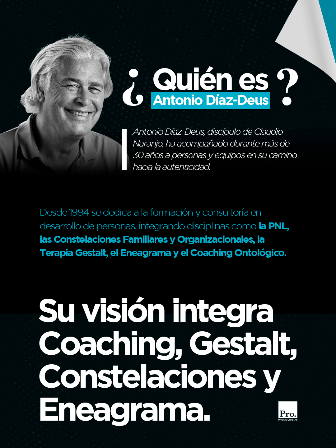 En ese tiempo, Antonio se formó en PNL (Master Training con Richard Bandler), en Constelaciones Familiares (Bert Hellinger) y Organizacionales (G. Weber, JJ. Stan, IOCTI), en Terapia Gestalt (Francisco Peñarrubia), en Eneagrama (Claudio Naranjo, SAT) y en Coaching Ontológico, integrando todas estas disciplinas que resume en su primer libro, el coach como chamán, en el año 2010.